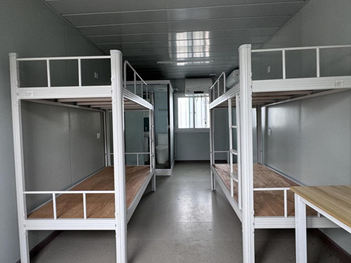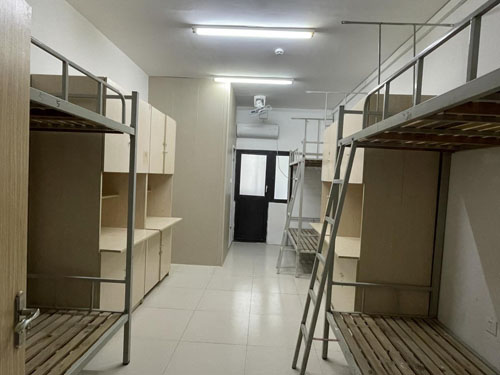 公寓內(nèi)設(shè)集宿區(qū)和生活服務(wù)配套區(qū),集宿區(qū)有14個管理單元,每個管理單元有20個房間,其中有1間洗衣房(兼開水房),每個房間可住4人,均配置獨(dú)立衛(wèi)生間,兩張高低床,空調(diào)和熱水器等設(shè)施。