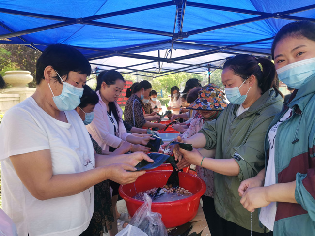 工作人員準(zhǔn)備好粽葉和泡好的糯米、蜜棗、紅豆等食材,大家各顯身手,拿粽葉、捋粽葉、做漏斗狀、填糯米、放餡料、壓緊實(shí)、封口、扎捆,巧手翻飛,不一會(huì)兒,一只只各式各樣的漂亮粽子就堆成了小山。盡管大家包粽子的水平參差不齊,但無(wú)論是技術(shù)嫻熟還是新手上路,大家都特別開心,整個(gè)活動(dòng)現(xiàn)場(chǎng)歡聲笑語(yǔ),其樂(lè)融融,好不熱鬧......