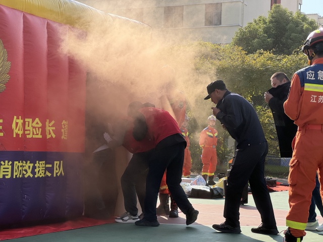 活動(dòng)中,園區(qū)消防大隊(duì)工作人員和公司消防志愿者向現(xiàn)場(chǎng)員工發(fā)放消防安全常識(shí)二十條宣傳單,細(xì)致介紹了各類滅火救援器材的使用方法和初期火災(zāi)處置、火場(chǎng)逃生自救等消防安全知識(shí)?;顒?dòng)現(xiàn)場(chǎng)設(shè)置了火場(chǎng)逃生和火災(zāi)處置等模擬場(chǎng)景,參加活動(dòng)的員工積極體驗(yàn),主動(dòng)提升自身應(yīng)對(duì)火災(zāi)的能力。
