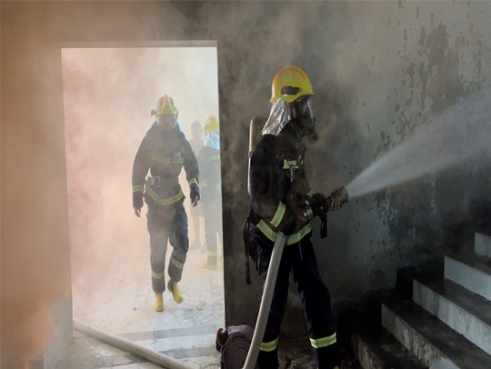 下午15點50分,科技物流園內(nèi)部突然起火,現(xiàn)場濃煙滾滾,相關(guān)工作人員立即采取自救措施,通知義務(wù)消防員有序組織人員疏散,消防官兵到場后,立即迅速組織對被困人員實施救援,及時堵截火勢、控制火情,經(jīng)過近30分鐘的滅火救援戰(zhàn)斗,大火被徹底撲滅,演練取得了圓滿成功。