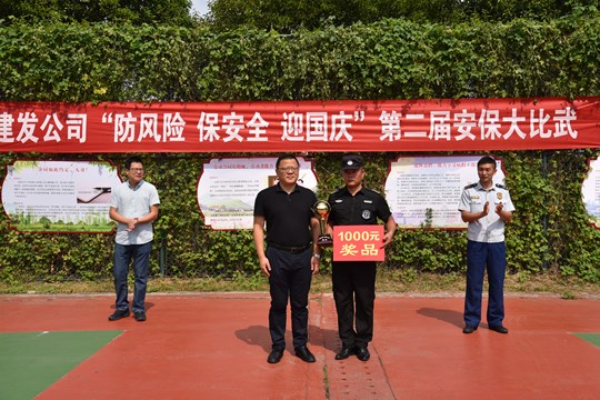 為了提升安保隊(duì)伍整體精神面貌,加強(qiáng)突發(fā)性事件快速反應(yīng)能力和聯(lián)合應(yīng)急處置能力,提高安保隊(duì)伍的安全意識(shí)和消防技能,切實(shí)保障職工的生命財(cái)產(chǎn)安全。9月23日,建發(fā)公司舉辦第二屆“防風(fēng)險(xiǎn)保安全迎國慶”安保大比武活動(dòng)。開發(fā)公司財(cái)務(wù)總監(jiān)黃健、園區(qū)消防大隊(duì)大隊(duì)長(zhǎng)石峰、建發(fā)公司副總經(jīng)理倪松出席活動(dòng)并講話。