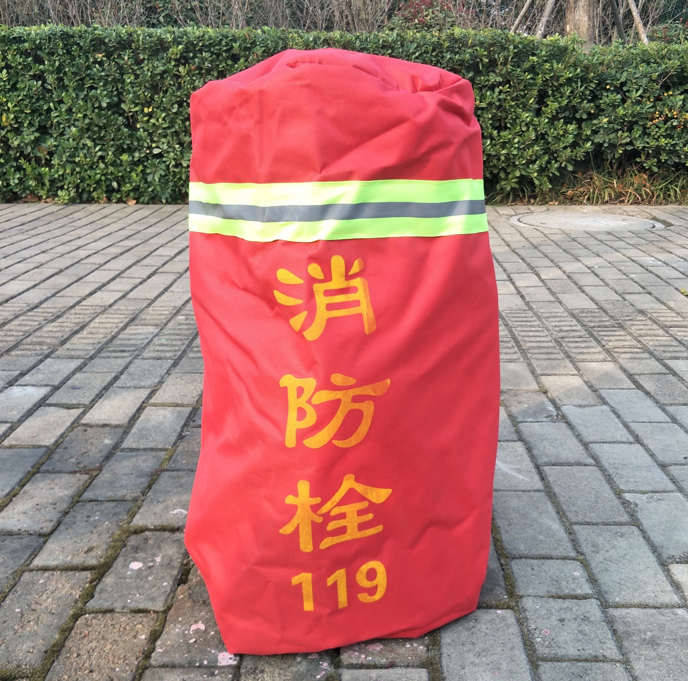 本次采用的保溫罩外層為紅色高密度牛津布材料,內(nèi)層為加棉復(fù)合布,外層印有“消防栓119 ”黃色字樣,頂部配有反光條。整個(gè)保溫罩看起來比較醒目、美觀,防寒防凍效果良好,有效保證了冬季消防用水安全。