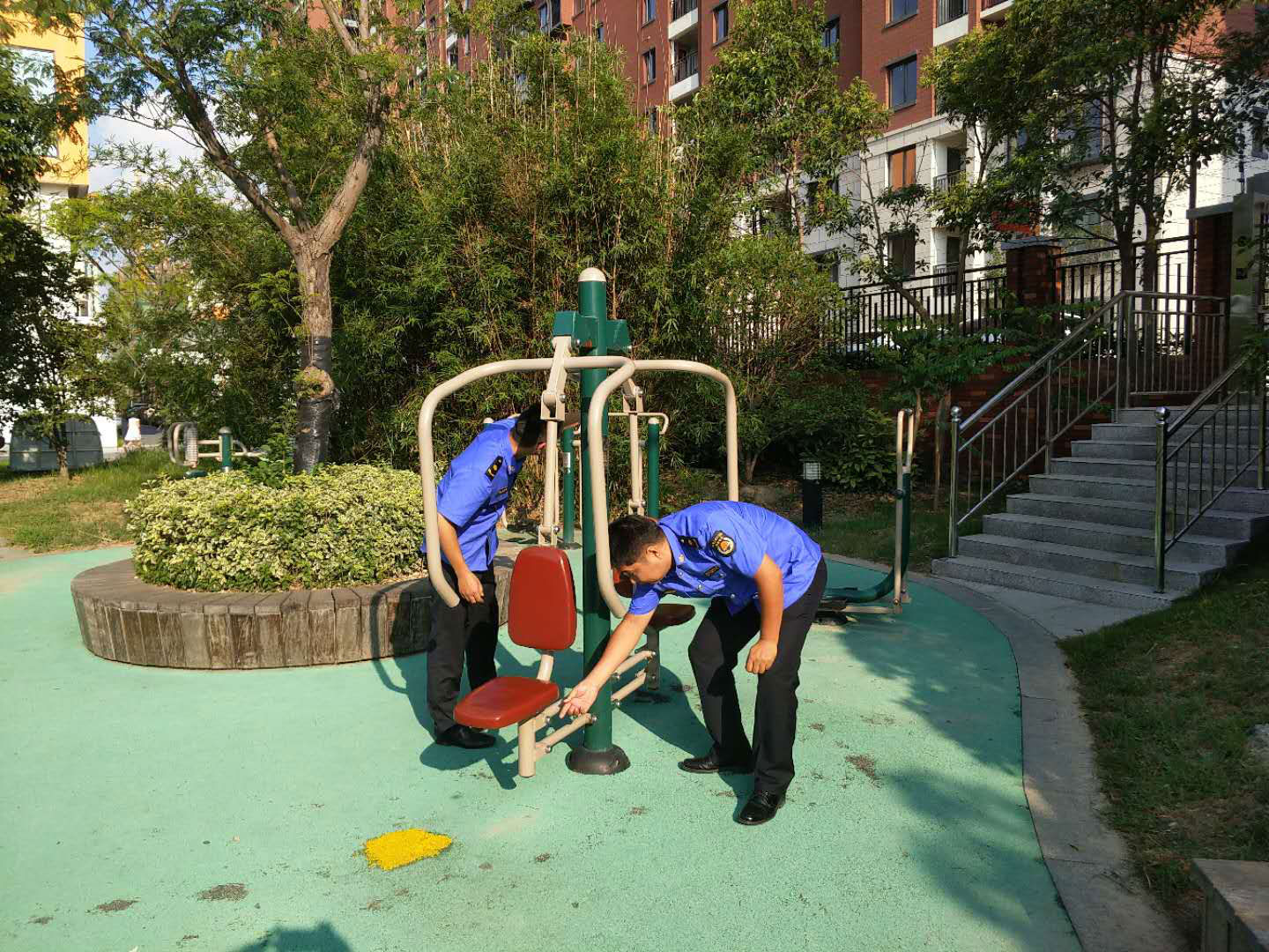 為排除健身器材存在的安全隱患,近日,市政物業(yè)部開展戶外健身器材安全檢查專項(xiàng)行動,切實(shí)為廣大居民群眾營造安全放心的健身環(huán)境。