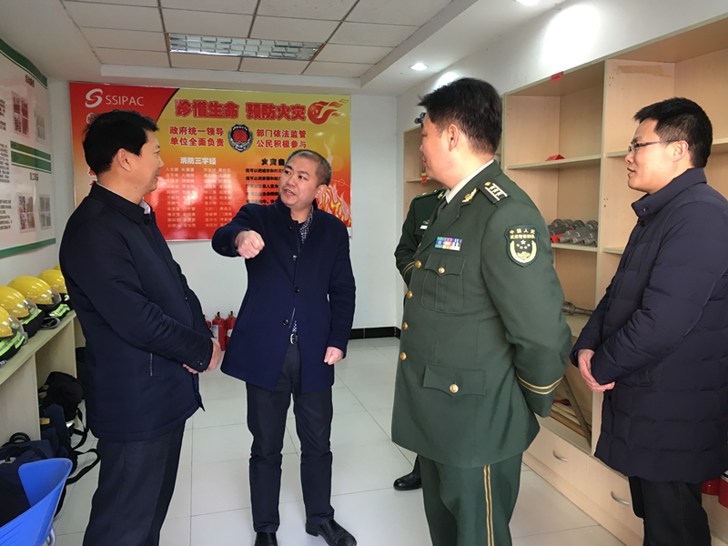 1月31日,市政府副秘書(shū)長(zhǎng)王永一行蒞臨園區(qū)公舍,督導(dǎo)檢查公司年終消防安全工作。宿遷市消防支隊(duì)支隊(duì)長(zhǎng)李榮、蘇宿工業(yè)園區(qū)管委會(huì)黨工委委員、管委會(huì)副主任戈亮及其他相關(guān)人員陪同檢查。