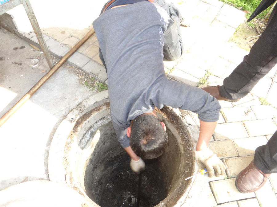 工人依次將井蓋掀開(kāi),發(fā)現(xiàn)水泥井下面油污淤積致管道堵塞,其主要原因是,每日產(chǎn)生的殘羹剩菜和廢棄物未經(jīng)過(guò)濾網(wǎng)直接流入下水管道,固體垃圾進(jìn)入管道遇到油污后導(dǎo)致管道堵塞。